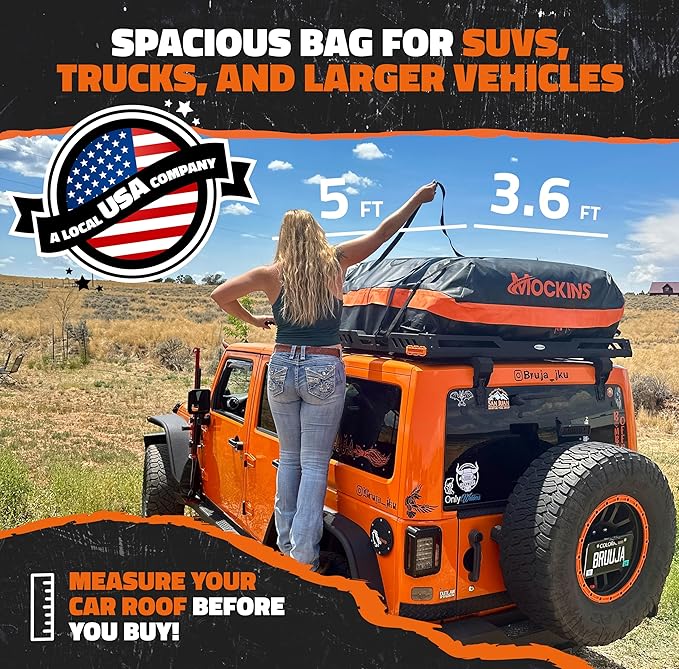 - ALL-IN-ONE CARGO BAGS FOR ROOF RACKS : Free up interior space with the Mockins Rooftop Cargo Carrier Bag. Each set of our cargo toppers for SUV & car includes the perfect accessories for quick, hassle-free installation. Plus, the foldable waterproof roof rack bag folds into its own carry case for convenient storage. It also comes with a combination lock for security on the road. Pack more & travel stress-free with the Mockins Cargo Bag for Top of Car Bundle, built for practicality & protection.
