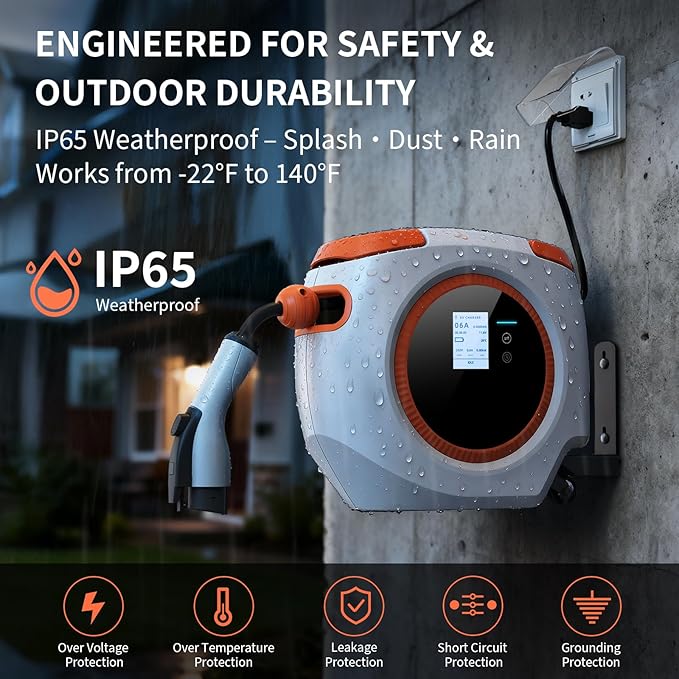 - 【Multiple security authentications】Electric ev charger Certified with UL and FCC for safety, and IP65 dustproof & waterproof rating. Features 5 core safety protections: overvoltage, short circuit, overtemperature, leakage, and ground protection. Works in temperatures from -22°F to 140°F, making it perfect for both indoor and outdoor use, even in rain or snow.