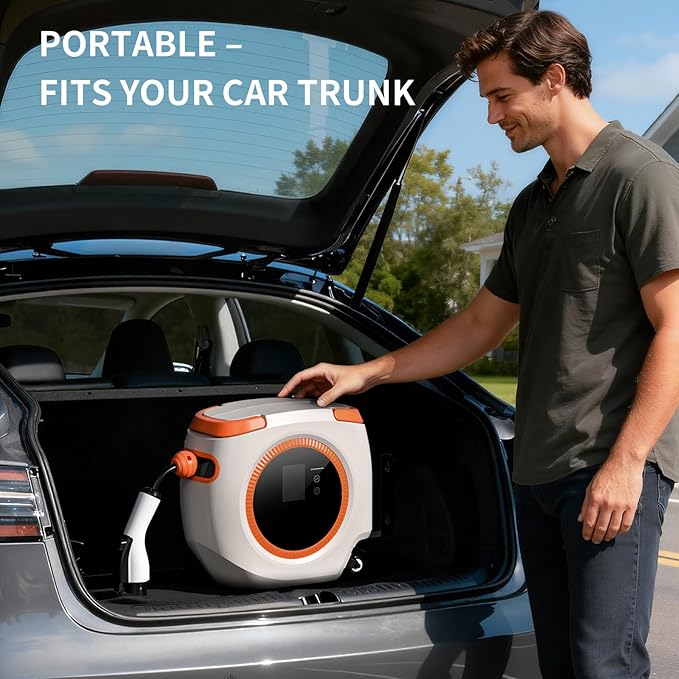 - 【Plug-and-Play & Ultra-Portable】Ev chargers no installation required. Compact and lightweight design fits in your car trunk. Perfect for home use, road trips, and camping. Portable charger level 1 enjoy portable charging anytime, anywhere.