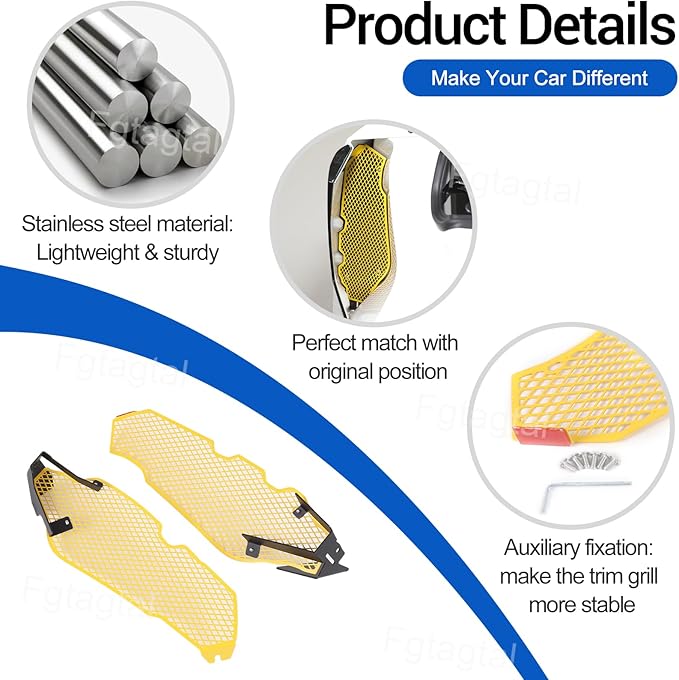 - 【EFFECTIVELY PROTECTION】: The radiator grille guards can effectively prevent the debris and impurities left in daily driving from falling into the side air intake and causing blockage, it is perfect and improve the aesthetics of your car interior and add distinctive color, makes your side air vent panel outlet look a lot better and protect it from anti-scratch and abrasion.