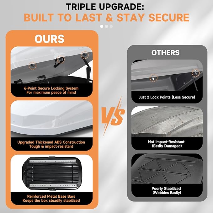 - STURDY AND WEATHER-RESISTANT MATERIALS: Constructed from durable ABS and PMMA materials, the box offers a shiny finish and long-lasting protection for your belongings. Its rugged, impact-resistant design helps keep your items safe from exposure to outdoor elements throughout your travels