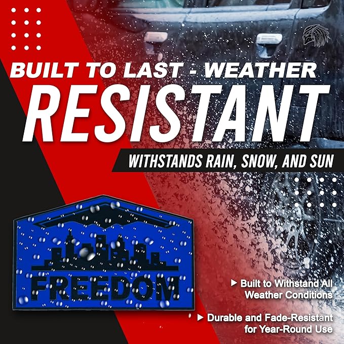 - PACKAGE INCLUDES: One premium Freedom Emblem made from solid zinc alloy, complete with a pre-applied adhesive backing so it’s ready to install right out of the package.