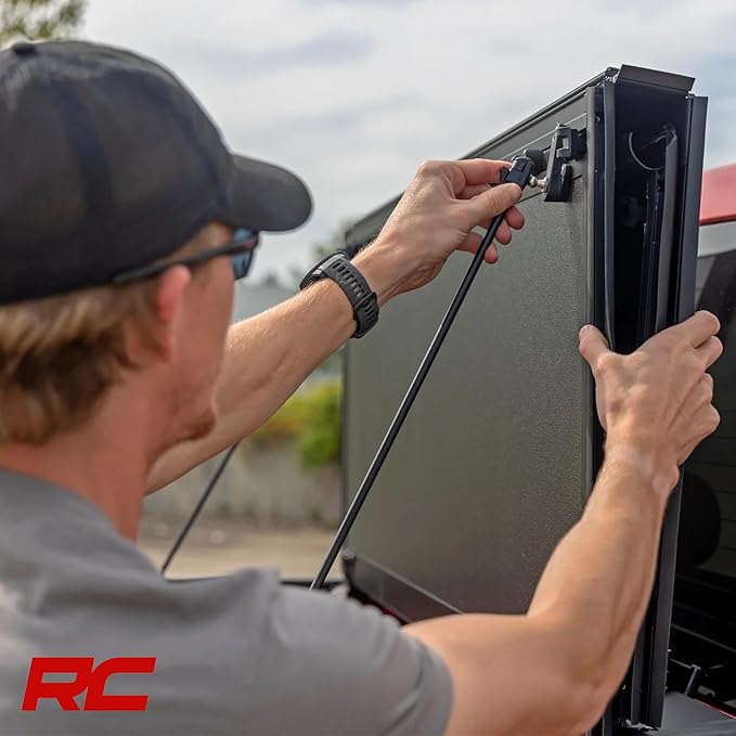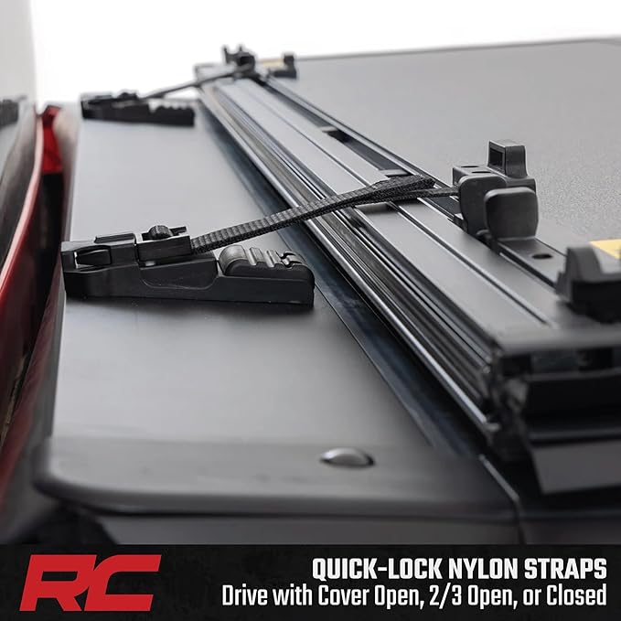 - Easy Cargo Access: Quick-connect prop rods hold the cover fully open; nylon straps secure it at 2/3 open. Drive with the cover fully open, 2/3 open, or closed.